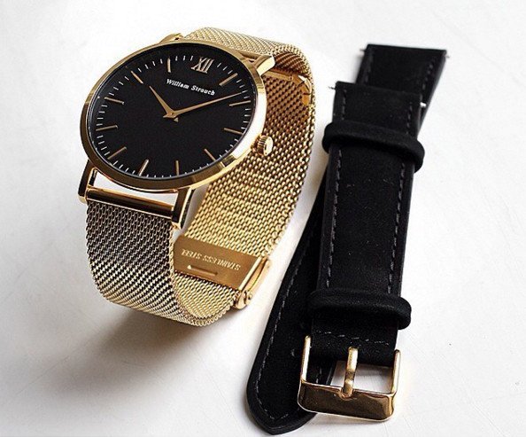 Klassisk designperle fra svenske William Strouch™ med gullfarget reim av rustfritt stål.